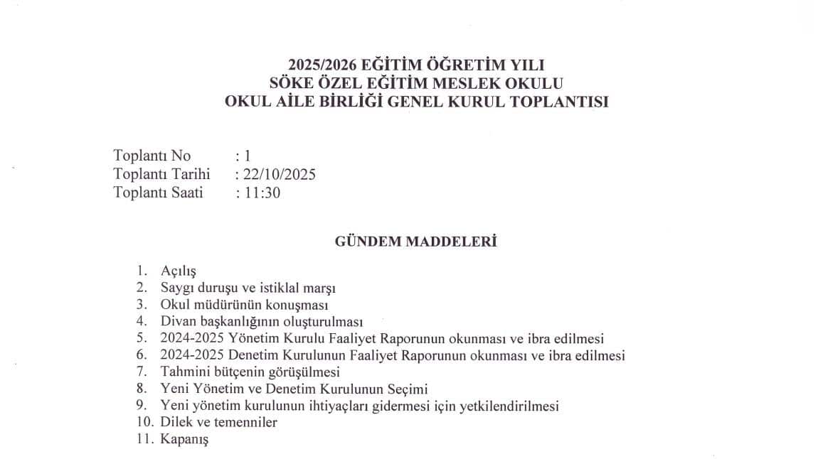2025-2026 EĞİTİM ÖĞRETİM YILI OKUL AİLE BİRLİĞİ TOPLANTISI HAKKINDA